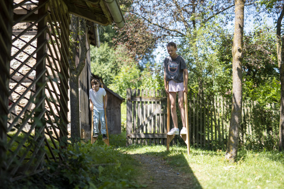 Langeweile kam früher nicht auf! Entweder beschäftigte man sich mit selbst hergestelltem Spielzeug, erfand ein Spiel oder traf sich mit den anderen Kindern aus dem Dorf. Wir erfahren, welche Lieblingsspiele die Kinder früher hatten und probieren Treibreifen, Kreisel und viele weitere aus.