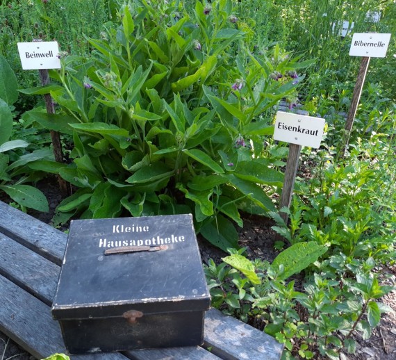 Manche "Artzney" lieferte auch der Kräutergarten. Anhand ausgewählter Pflanzen wird die Verwendung in der traditionellen Medizin im Vergleich zur modernen Phytotherapie erklärt.
