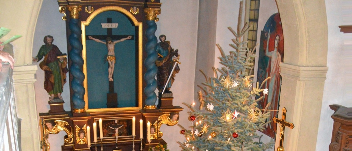 Weihnachtlich geschmückte Dorfkirche Mönchsondheims